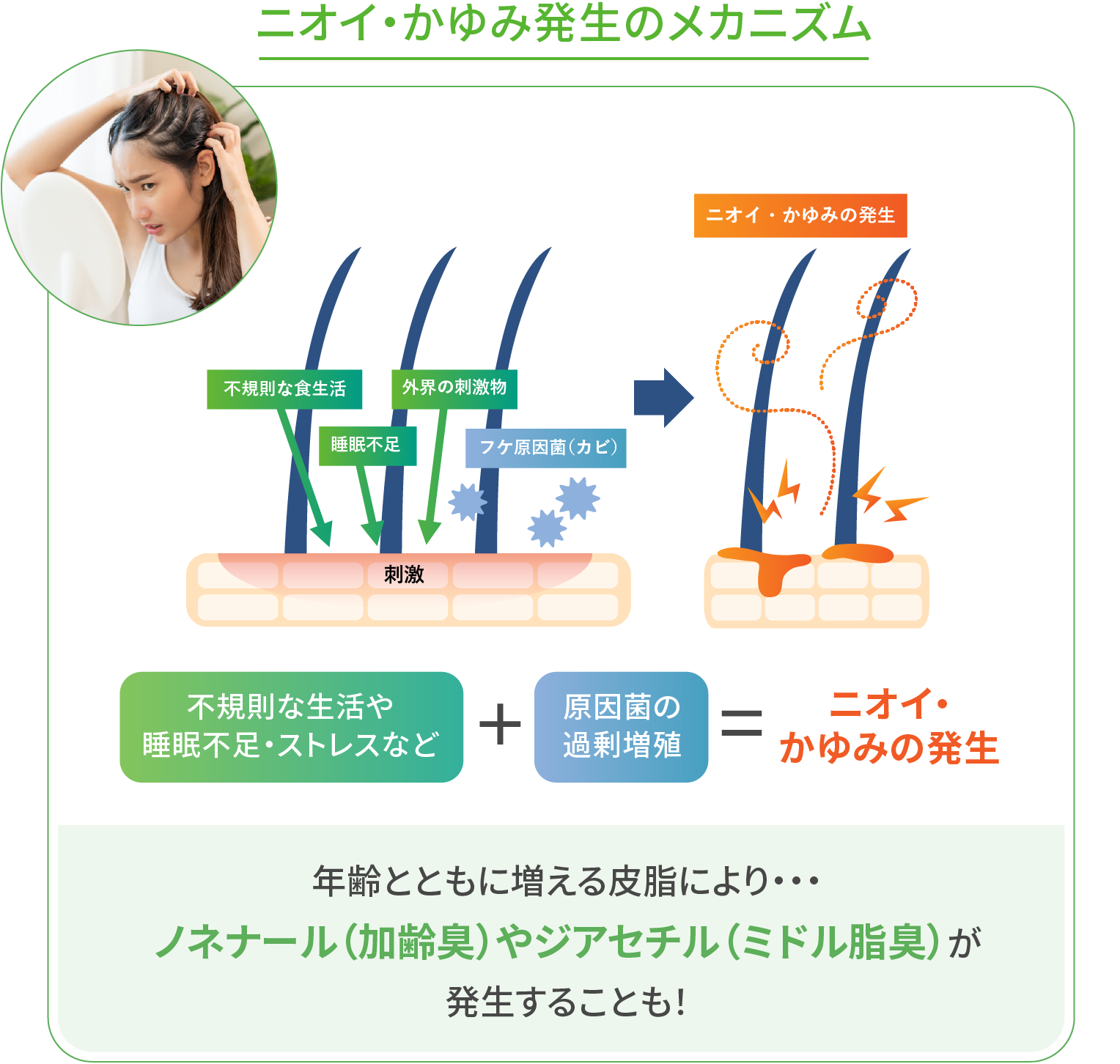 頭皮のかゆみやフケを防ぎ、すこやかな頭皮を保ちます。